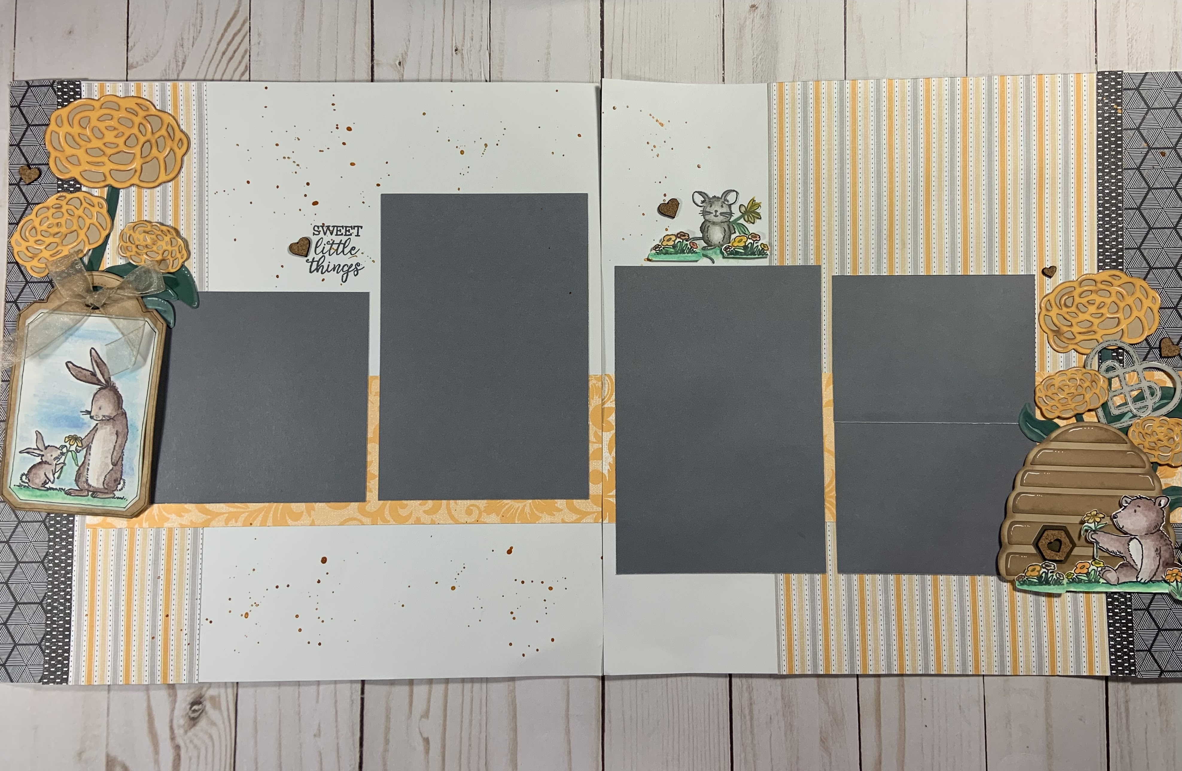 This stamp set is so cute and a lot of fun to color! I wanted to share some cards and a 2-page layout.